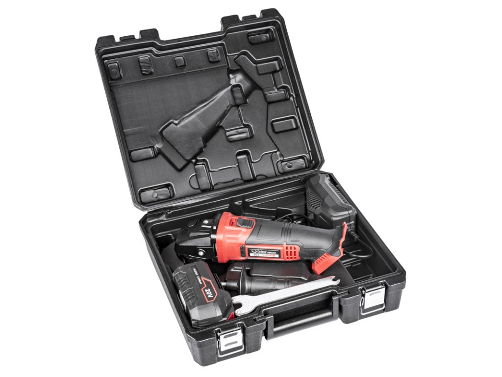 Součástí balení je baterie 4 Ah, nabíječka a přepravní kufr