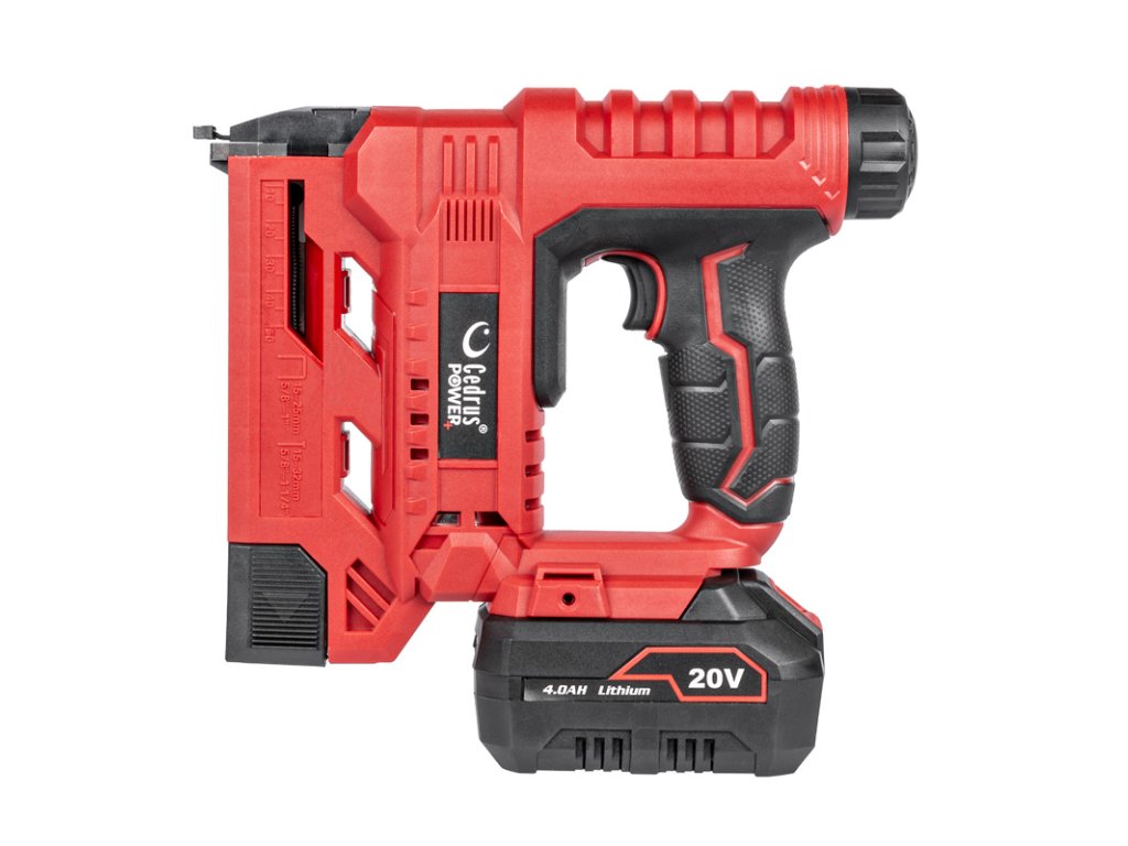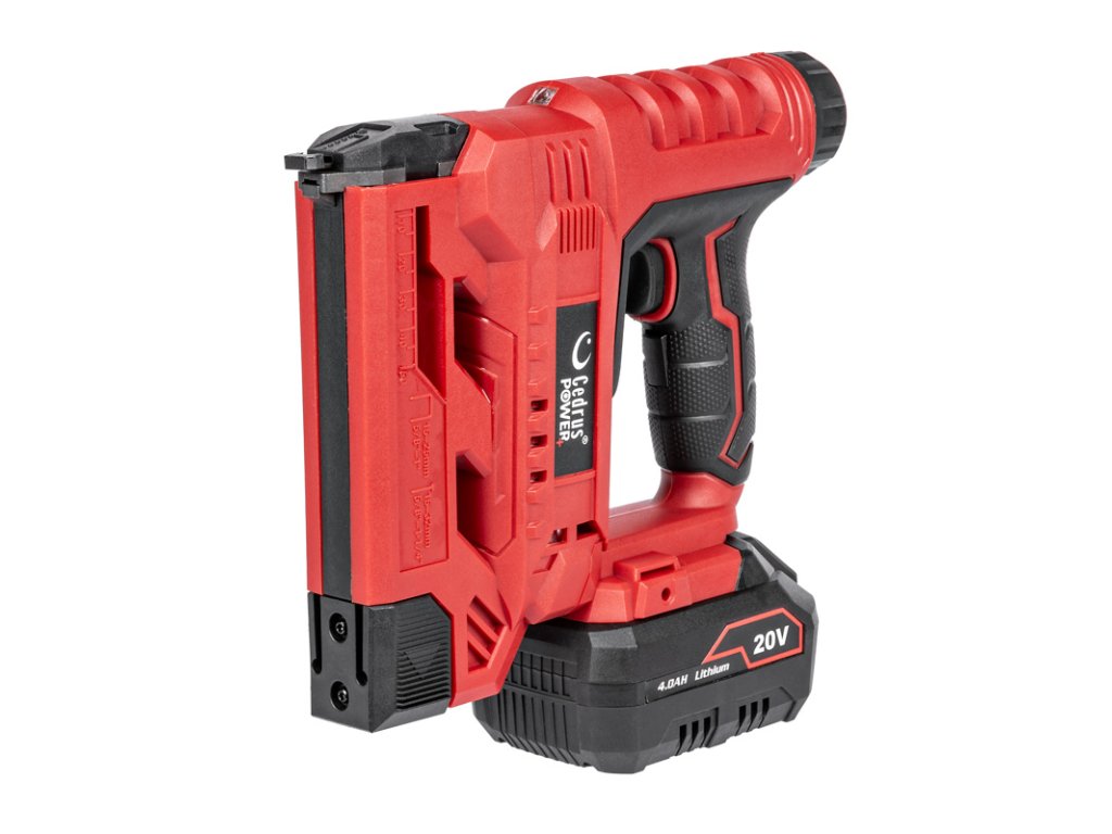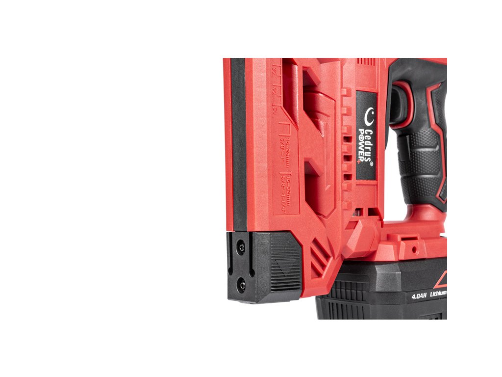 Cedrus CEDNGLI je praktická akumulátorová hřebíkovačka a sponkovačka, navržená pro pohodlné bezdrátové používání bez nutnosti napájení ze sítě. Umožňuje vkládání hřebíků typu T (15–32 mm) a spon typu U (15–25 mm) s kapacitou zásobníku až 50 kusů. Přístroj nabízí 6stupňovou regulaci síly úderu a rychlost až 30 úderů za minutu.