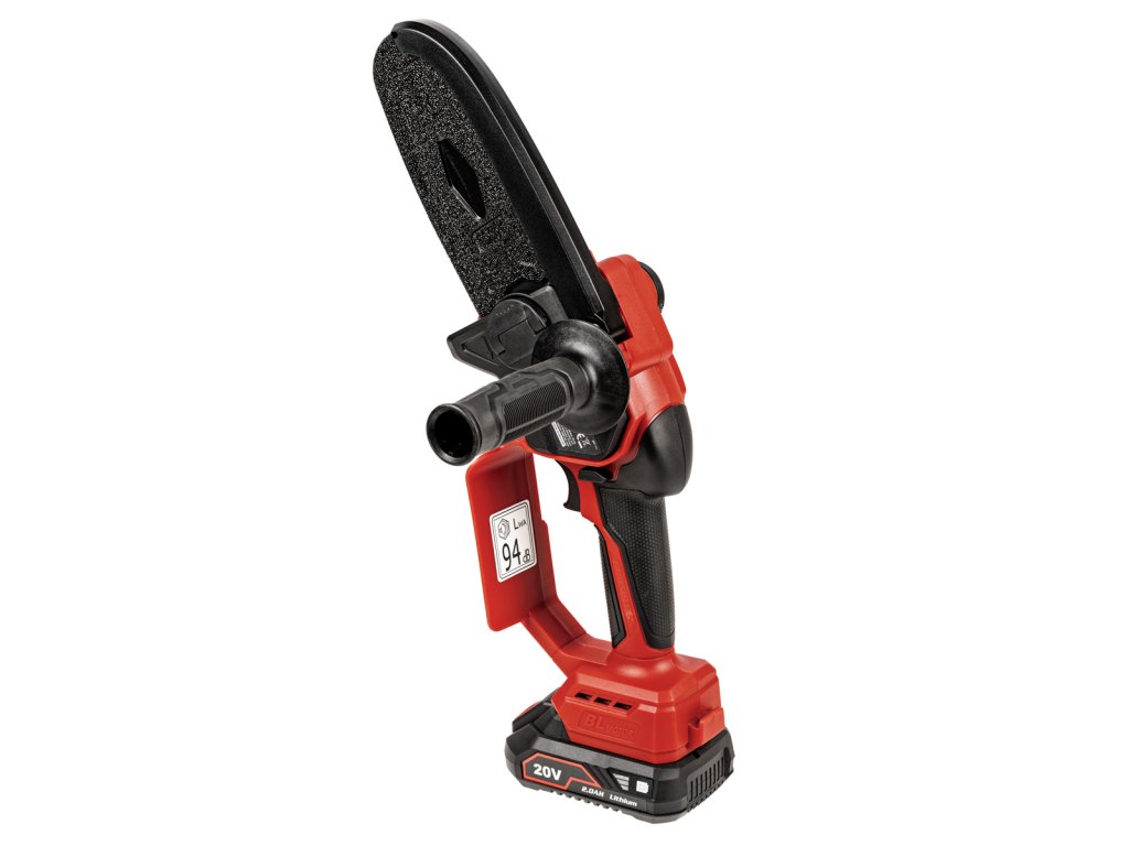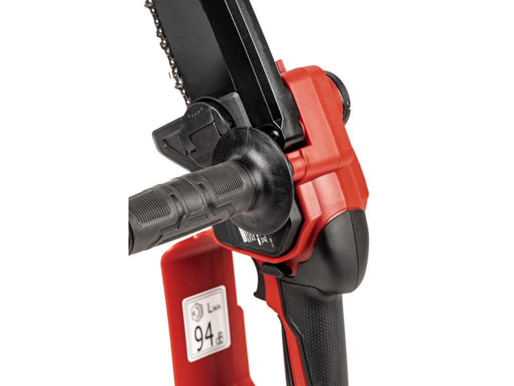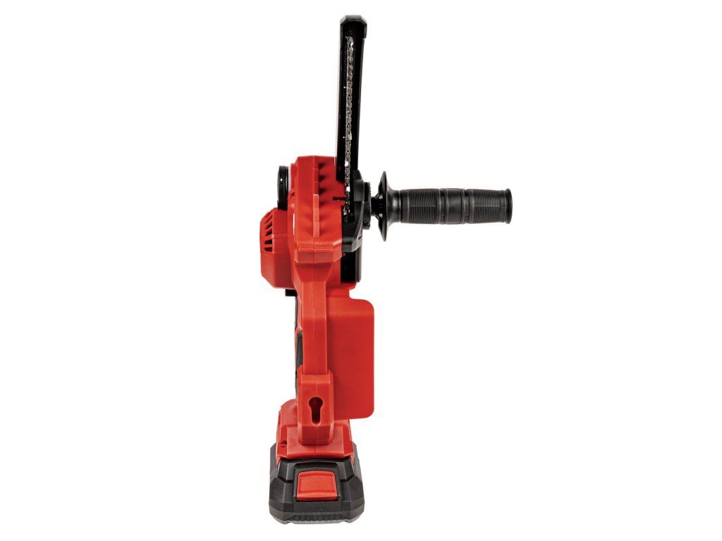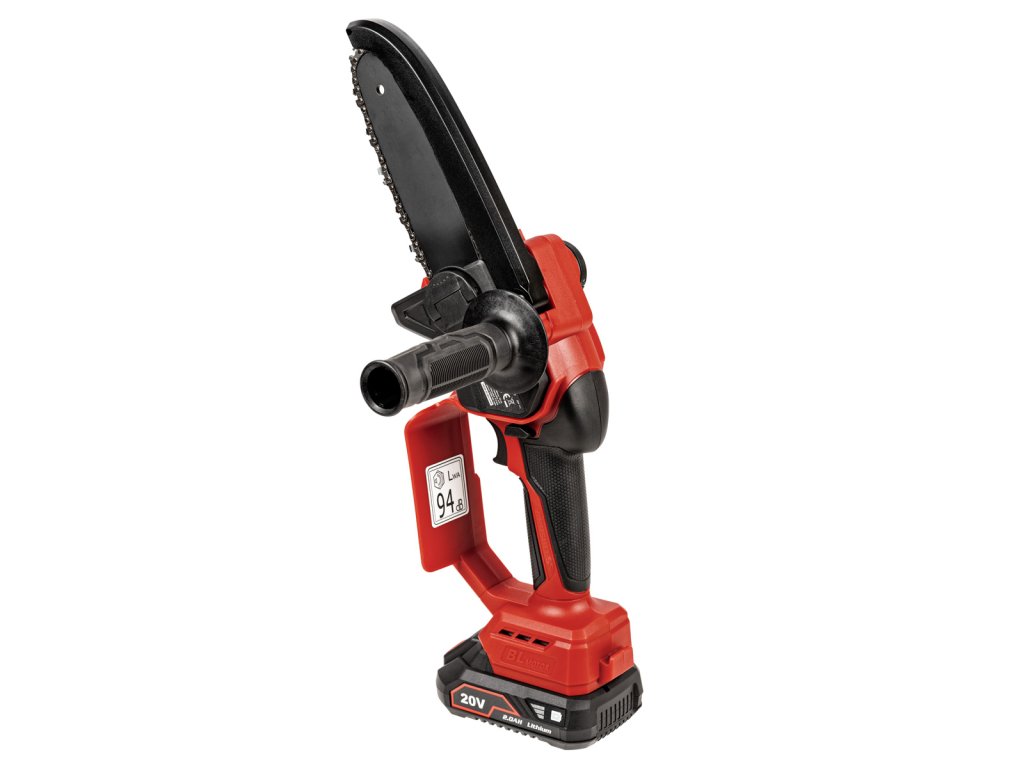 Kompaktní mini řetězová pila Cedrus s 15cm lištou, beznástrojovým napínáním řetězu a automatickým mazáním. Součástí je baterie 2 Ah a nabíječka 2,4 A.