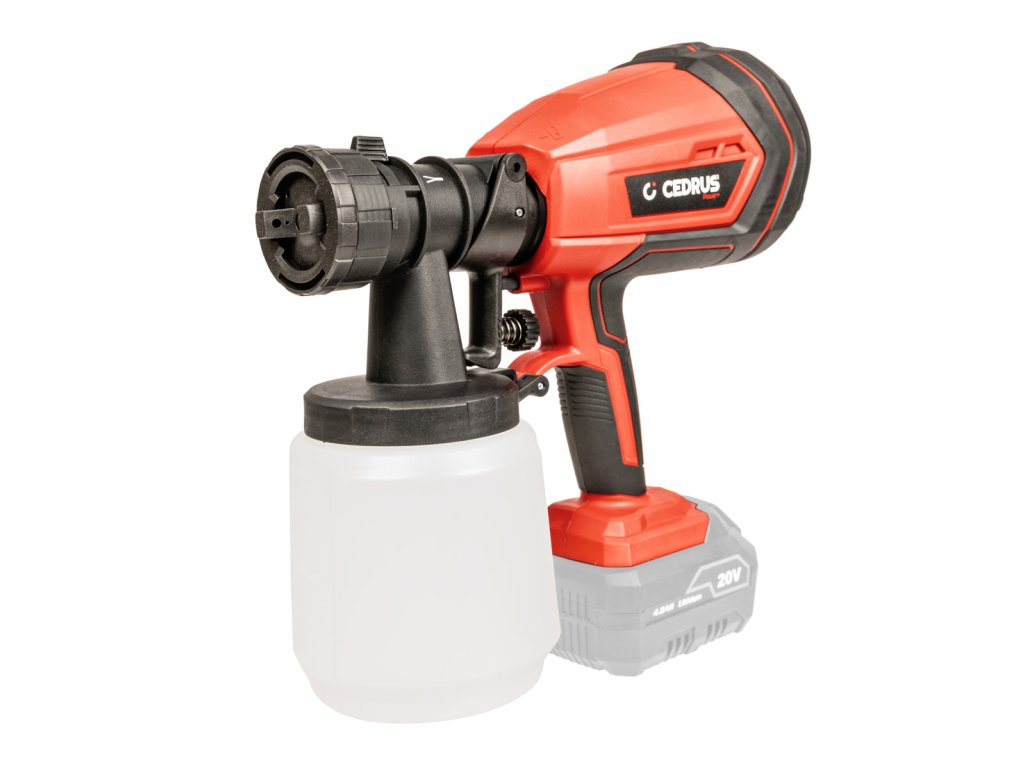 Akumulátorová stříkací pistole Cedrus CEDSP1000LI je univerzálním nástrojem pro malířské, renovační i dílenské práce. Umožňuje snadné nanášení nátěrů, laků, mořidel, podkladů a prostředků na dřevo pomocí metody HVLP. Díky nádobě o objemu 1 l, nastavitelnému průtoku až 800 ml/min a třem výměnným tryskám (1.5 / 1.8 / 2.5 mm) je vhodná jak pro jemné, tak pro silnější nátěry. Nastavení směru postřiku (vertikální, horizontální, kruhový) a integrovaný systém proti zpětnému toku barvy při malování stropů zajišťují čistou práci bez kapání. Ovládání je jednoduché díky ergonomickému madlu a regulaci tlaku. Pistole je kompatibilní se systémem Cedrus Power+ 20V.