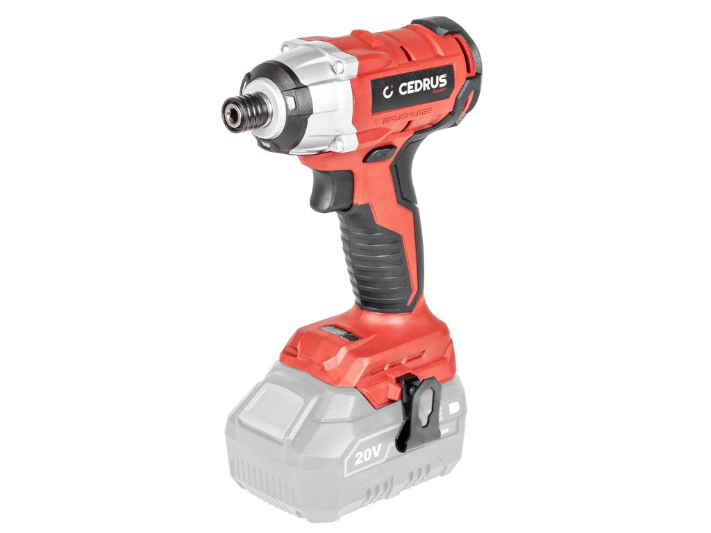 - Pohodlné ovládání zajišťuje měkká ergonomická rukojeť, přepínač směru otáčení, úchyt na pásek, a LED osvětlení pro práci v šeru. Díky rychloupínacímu šestihrannému držáku 1/4” HEX je výměna bitů rychlá a beznástrojová. Kompatibilní se systémem Cedrus Power+ 20V.