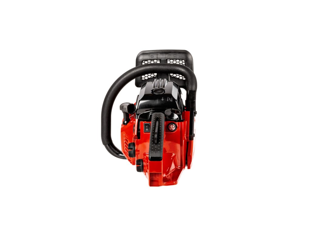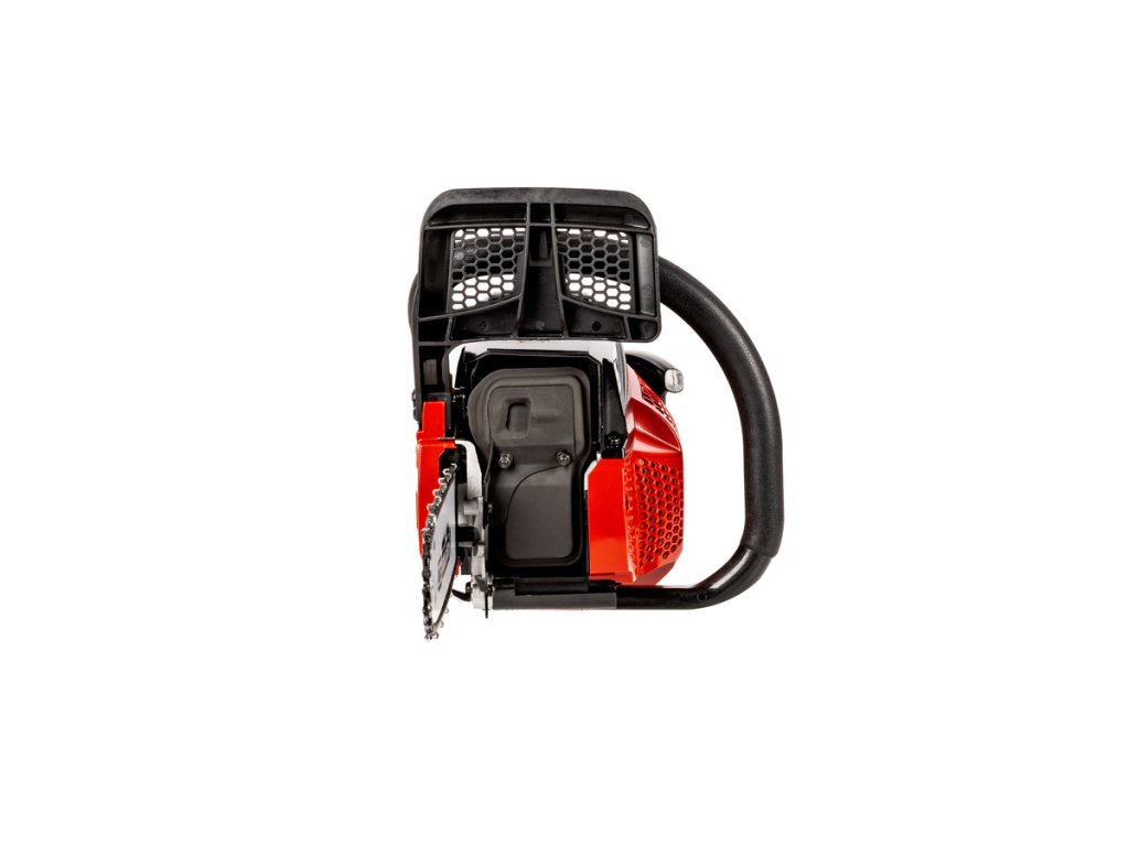 - Pila je vybavena automatickým mazáním řetězu, což prodlužuje životnost nástroje a zajišťuje optimální výkon. Bezpečnostní brzda řetězu okamžitě zastaví pohyb řetězu při nečekaném zpětném rázu. Ergonomická rukojeť a nízká hmotnost umožňují snadnou manipulaci i při delší práci.