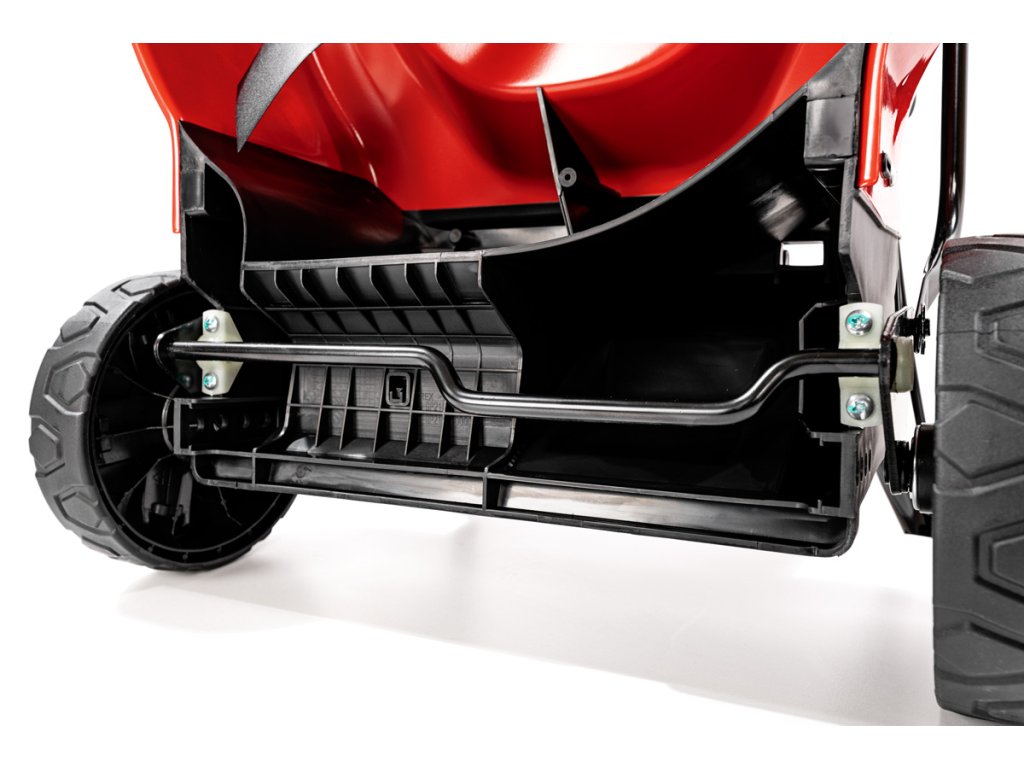 - Tato sekačka je bez pojezdu, což zajišťuje snadnou ovladatelnost a vyšší kontrolu nad pohybem. Centrální nastavení výšky sečení v 6 úrovních (25 – 75 mm) umožňuje přizpůsobení délky trávy dle potřeby. Velká přední (6") a zadní (7") kola s ložisky usnadňují manipulaci i na nerovném terénu.