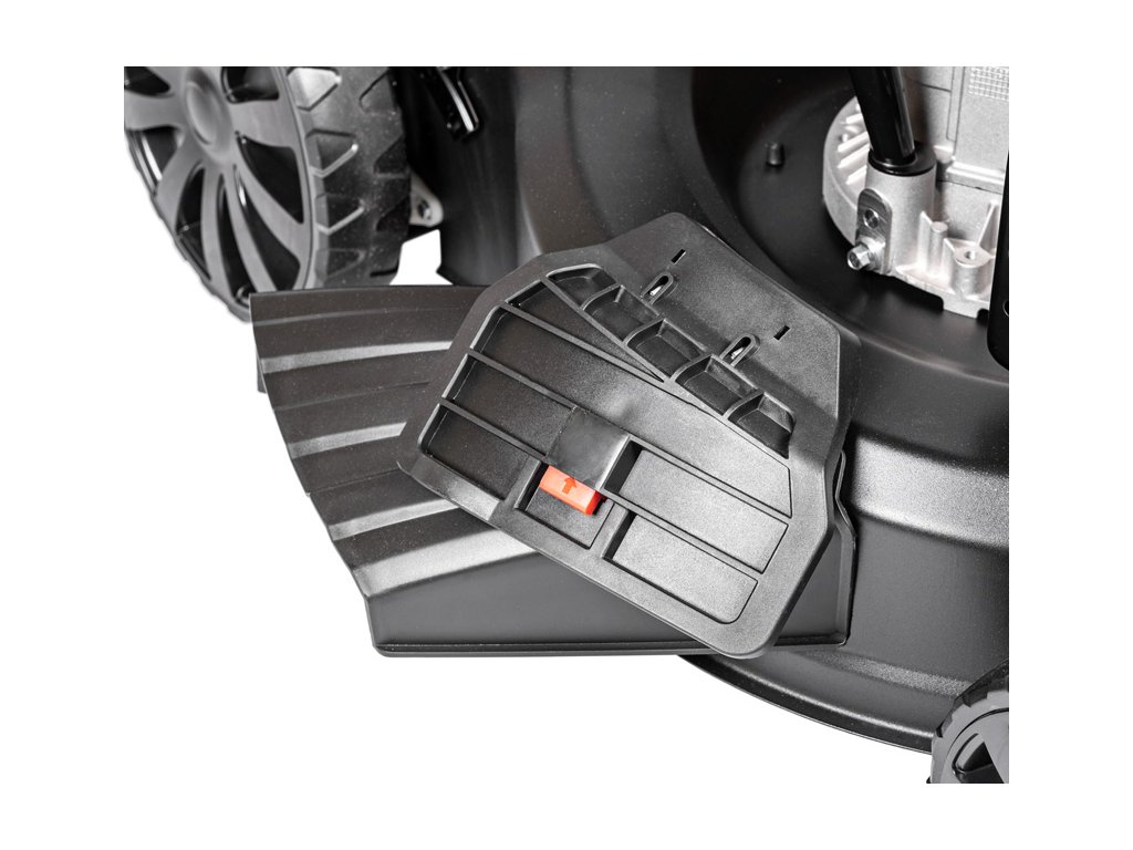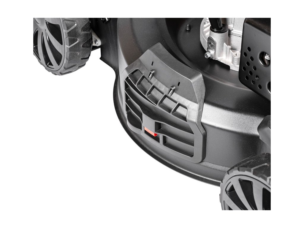 - Díky šířce záběru 53 cm umožňuje rychlejší sekání a minimalizuje počet průchodů. Centrální nastavení výšky sečení umožňuje výběr mezi 6 úrovněmi (25–75 mm), což zajišťuje maximální flexibilitu v závislosti na stavu trávníku. Pojezdový systém zvyšuje komfort při práci a výrazně snižuje námahu při manipulaci.