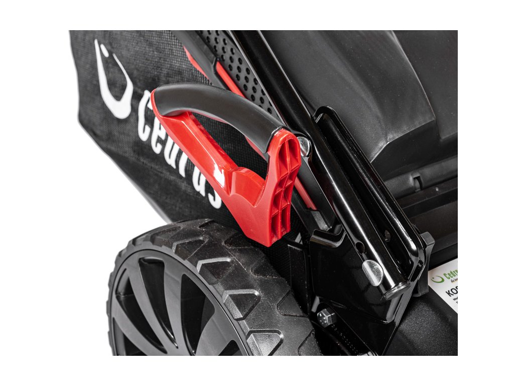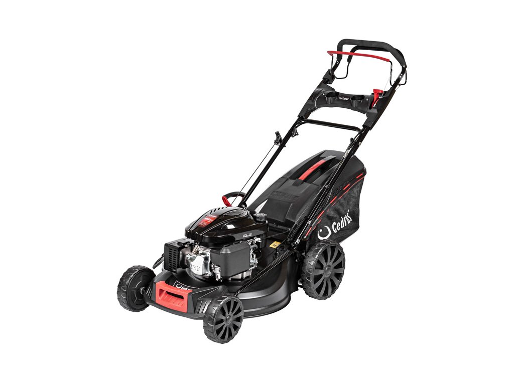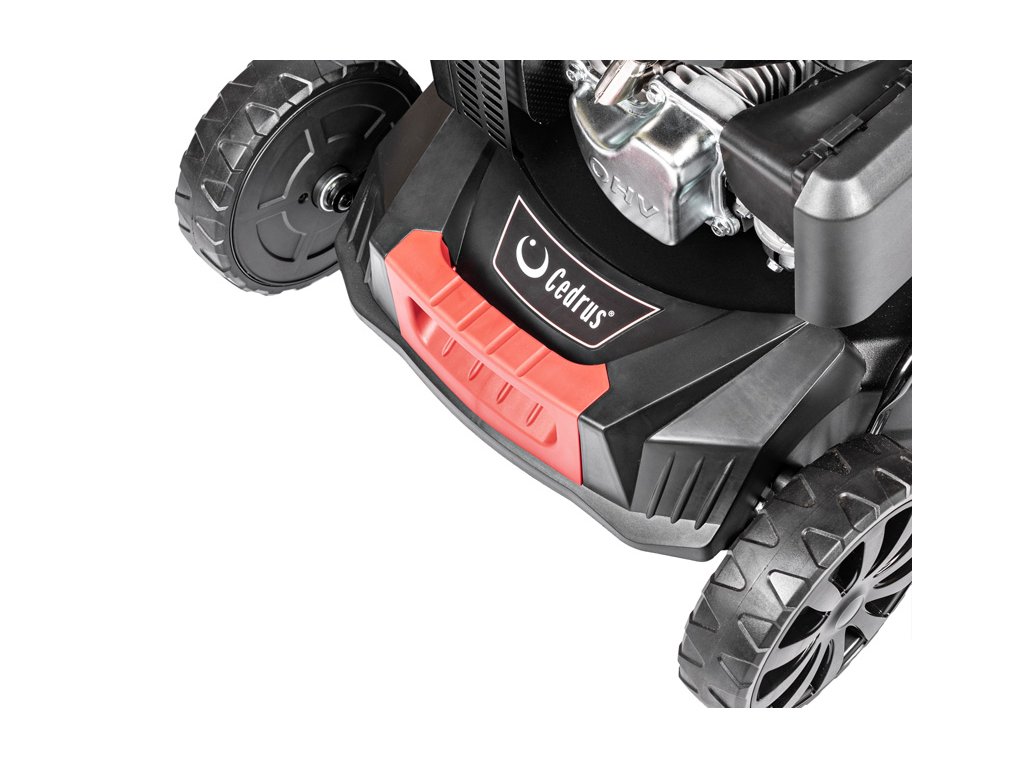 Benzínová sekačka Cedrus CEDKS53S-L s výkonným čtyřtaktním motorem Loncin 196 cm³ a pojezdem nabízí široký záběr 53 cm, čtyři režimy sečení a centrální nastavení výšky sečení. Díky velkým kolům a robustní ocelové konstrukci je ideální pro sekání větších travnatých ploch.
