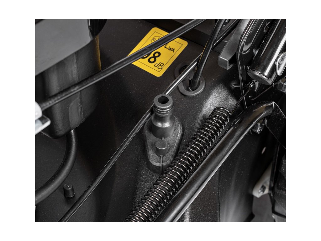 - Přípojka pro zahradní hadici – snadné čištění po sekání