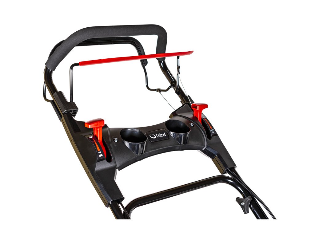 - Držák na nápoje a ergonomická rukojeť s regulací výšky