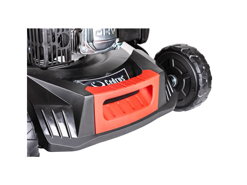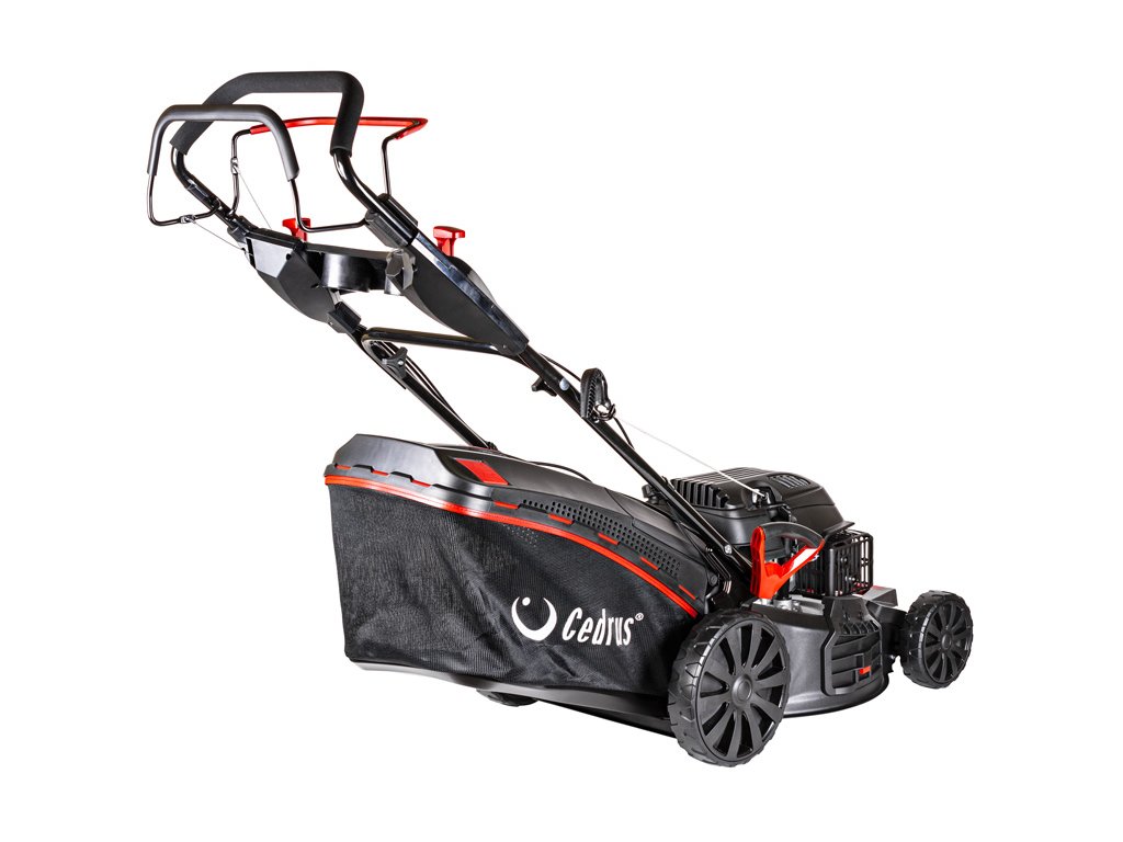 Benzínová sekačka Cedrus CEDKS53S s výkonným čtyřtaktním motorem Y196V OHV (196 cm³) a pojezdem nabízí široký záběr 53 cm, tři způsoby sečení a centrální nastavení výšky sečení. Je ideální pro středně velké a větší zahrady.