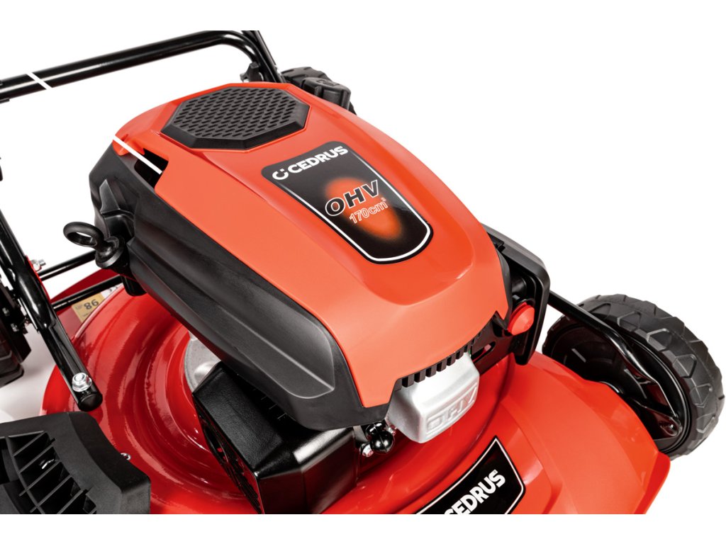 Výkonná a robustní benzínová sekačka Cedrus KS51P s motorem 170 cm³, ocelovým šasi a širokým záběrem 51 cm je určena pro sečení ploch do 2000 m². Nabízí možnost mulčování a bočního výhozu, bez sběrného koše.