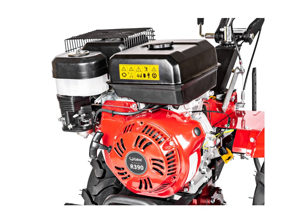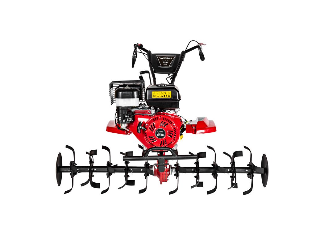Výkonný benzínový kultivátor Cedrus CEDRUSGL06 s motorem Rato R390, širokou variabilní pracovní šířkou a robustní konstrukcí pro efektivní přípravu půdy.