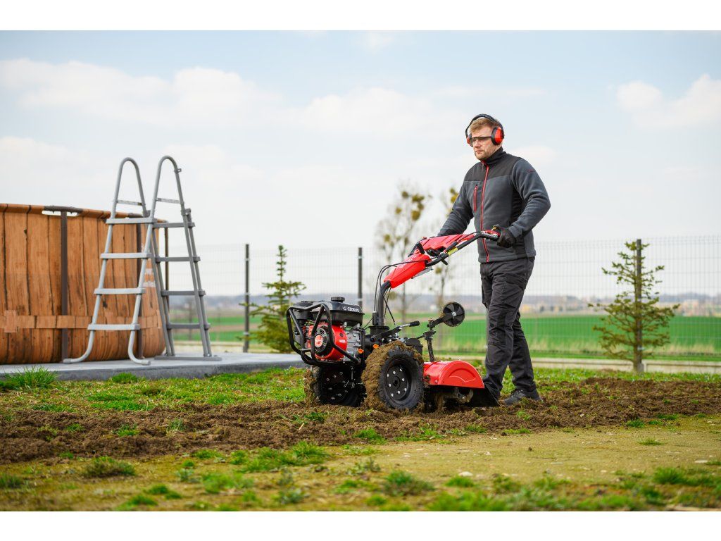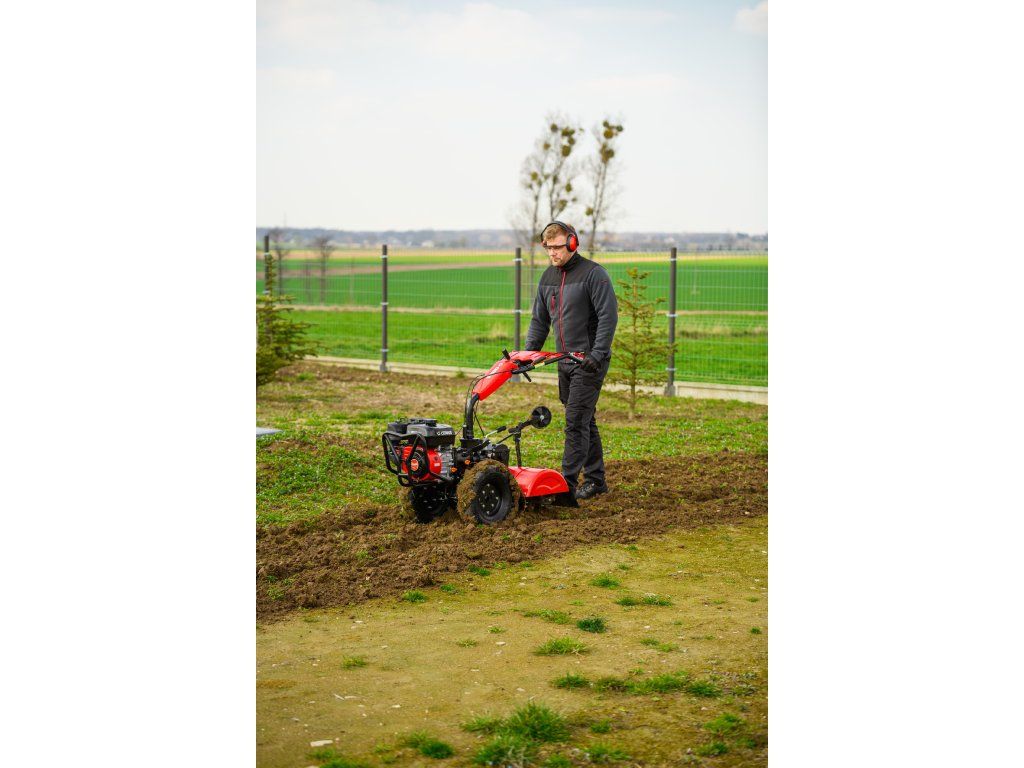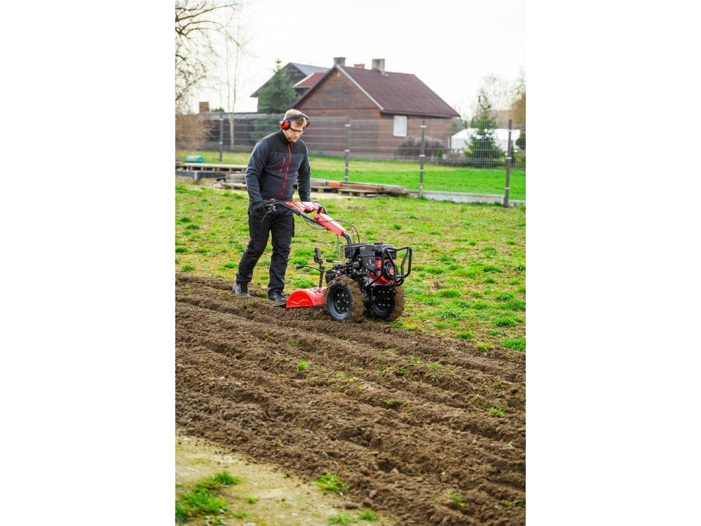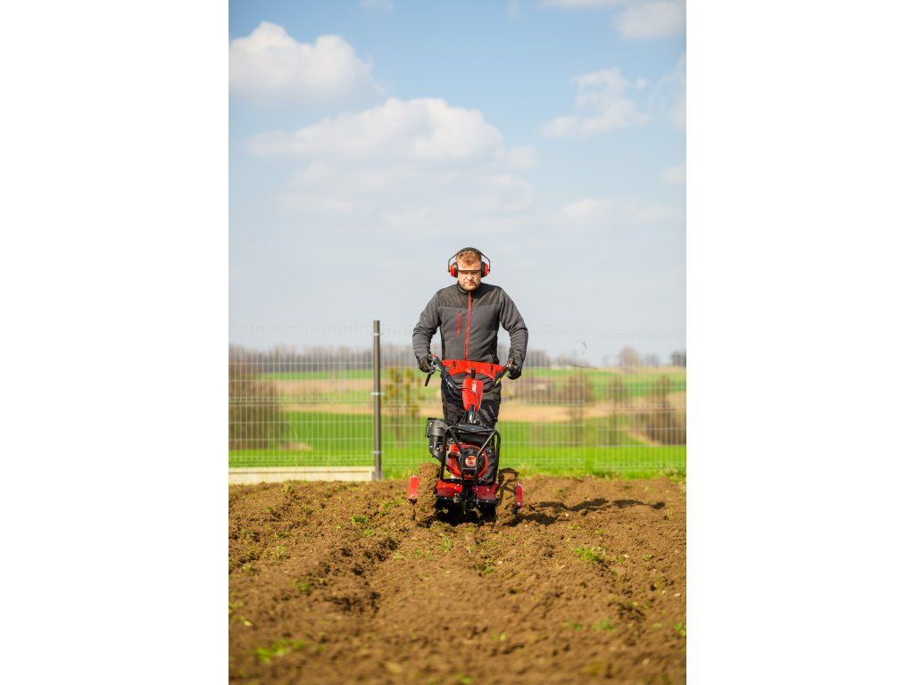 - Díky šířce záběru 620 mm a nastavitelné pracovní hloubce více než 100 mm umožňuje efektivní zpracování půdy i v těžších podmínkách. Robustní konstrukce zajišťuje dlouhou životnost a vysokou odolnost při každodenním používání.