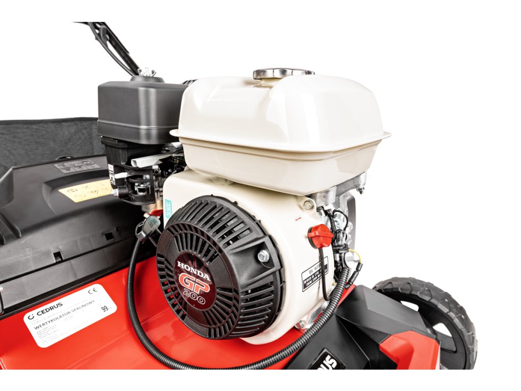 Výkonný benzínový vertikutátor Cedrus CEDWR01-H s motorem Honda GP200 je ideální pro efektivní provzdušnění trávníku. Nabízí šířku pracovního záběru 40 cm, vyměnitelné pracovní válce a centrální nastavení hloubky, což usnadňuje údržbu trávníku.