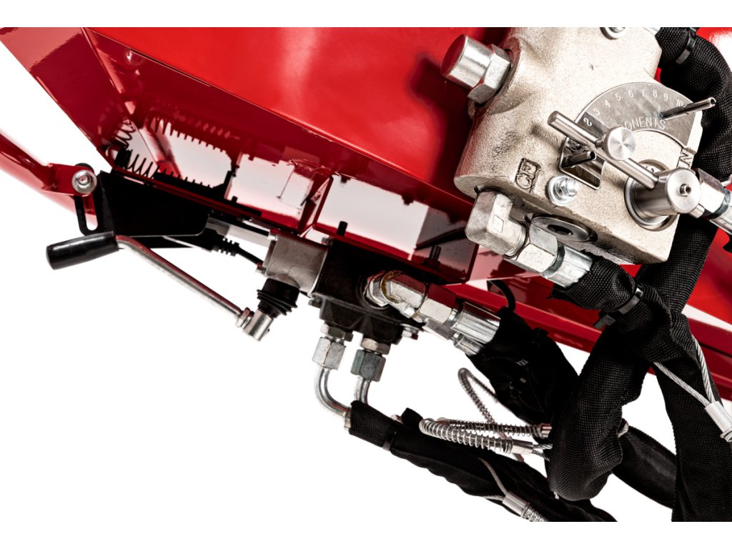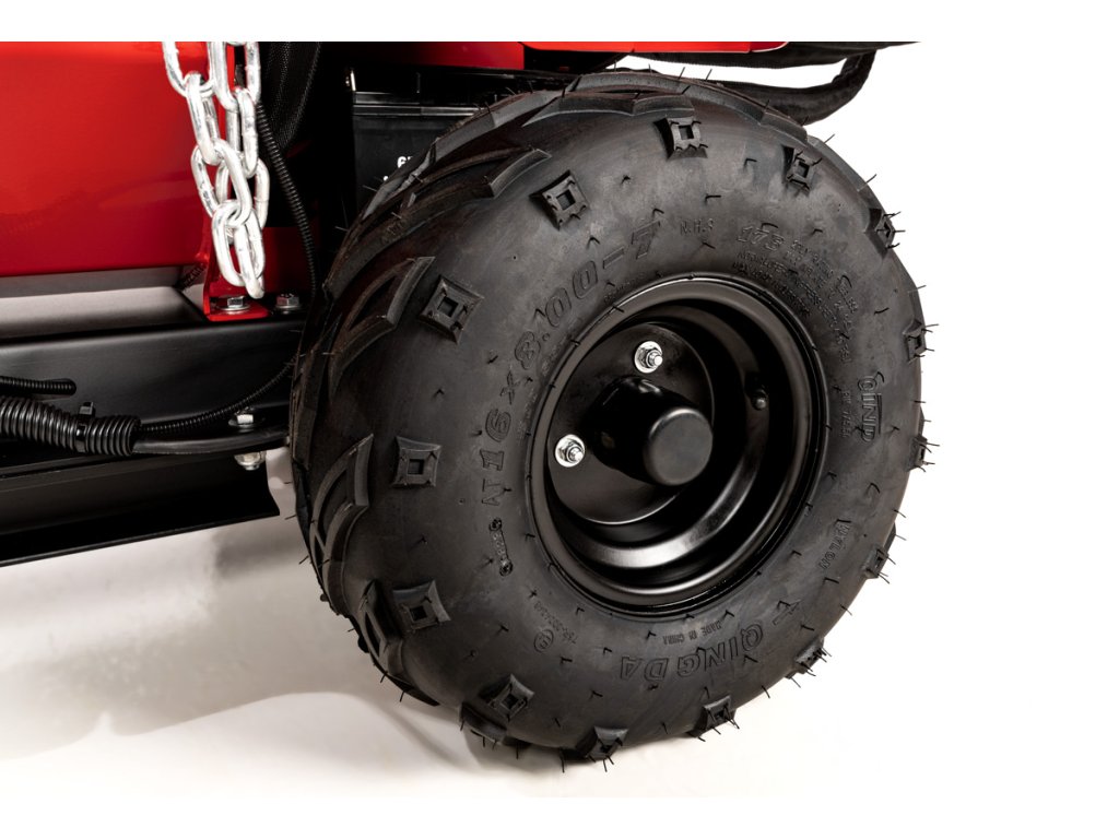 - Robustní ložiskovaný hřídel se maznicí, dvojitý klínový řemenový převod, kvalitní kola (16x6.5-8) a tažné zařízení s kulovým závěsem zajišťují snadnou přepravu a vysokou stabilitu během práce.