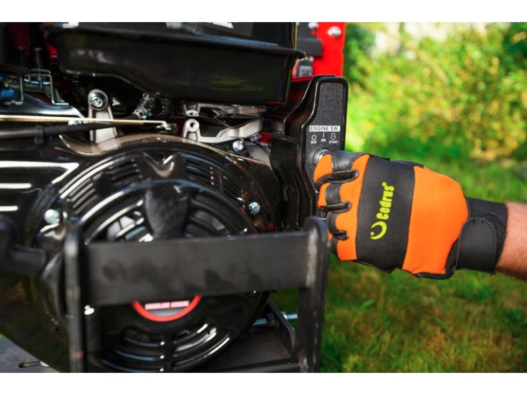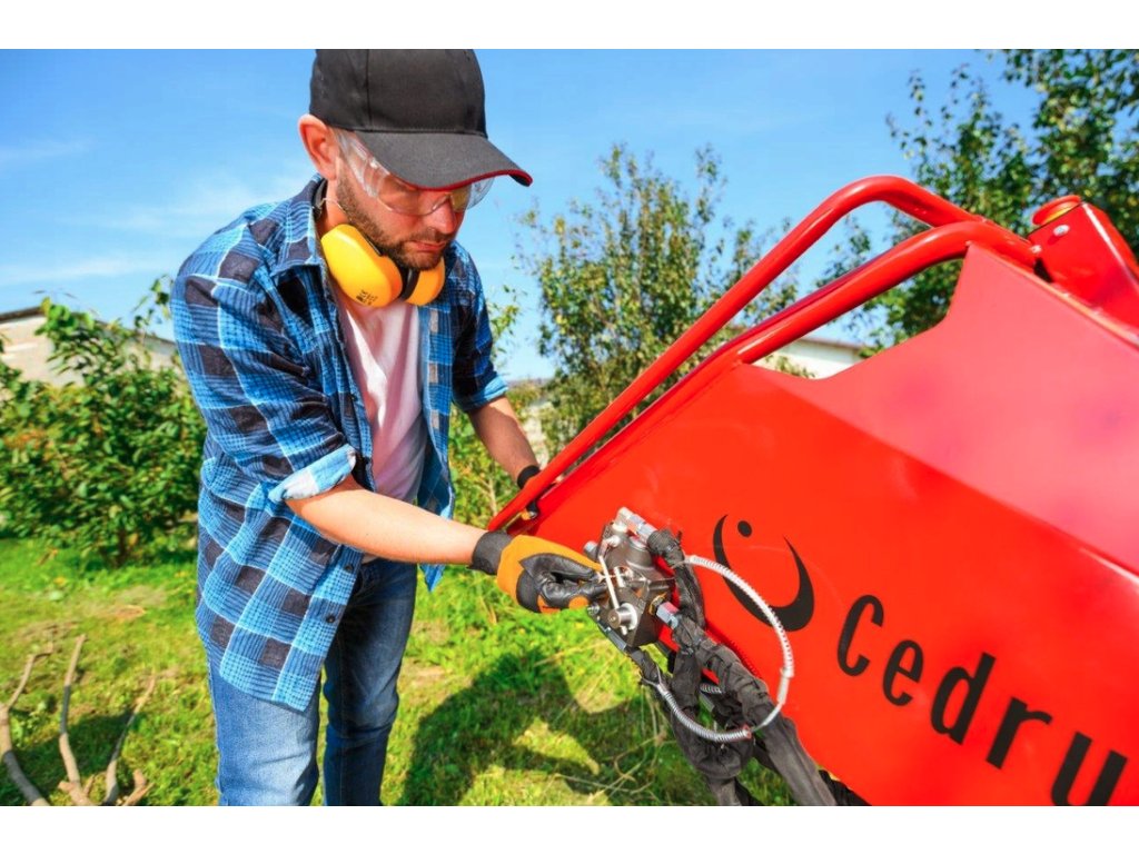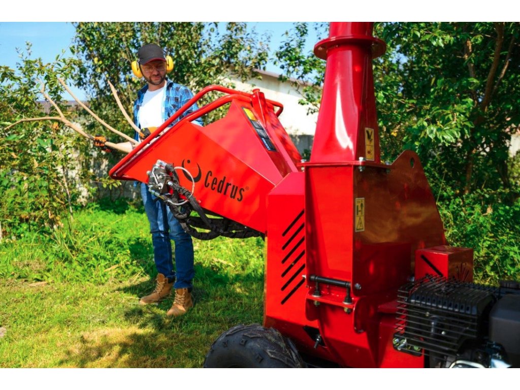 Model CEDRB05PRO-HE od značky Cedrus je výkonný profesionální rozdrabňovač větví, navržený pro intenzivní práci při údržbě sadů, lesů či parkových ploch. Stroj je vybaven čtyřtaktním motorem Loncin G420F o výkonu 9 kW (420 cm³) s elektrickým startem, což výrazně usnadňuje obsluhu. Systém podávání větví je plně hydraulický, s plynulou regulací rychlosti v rozmezí 0–600 ot./min.
