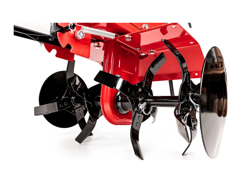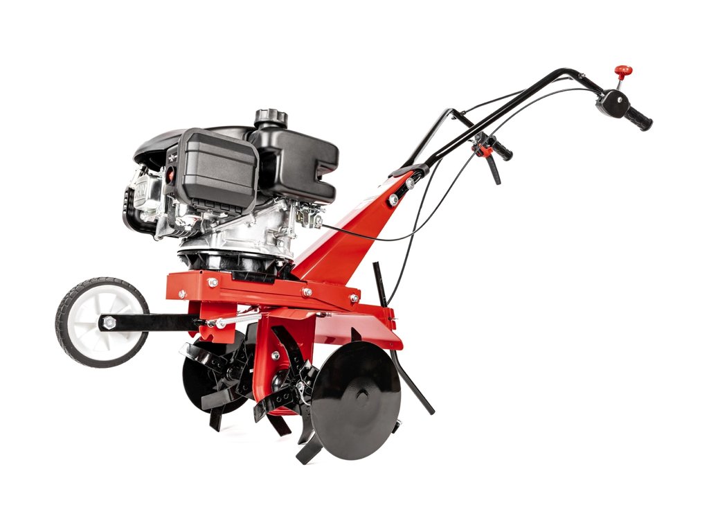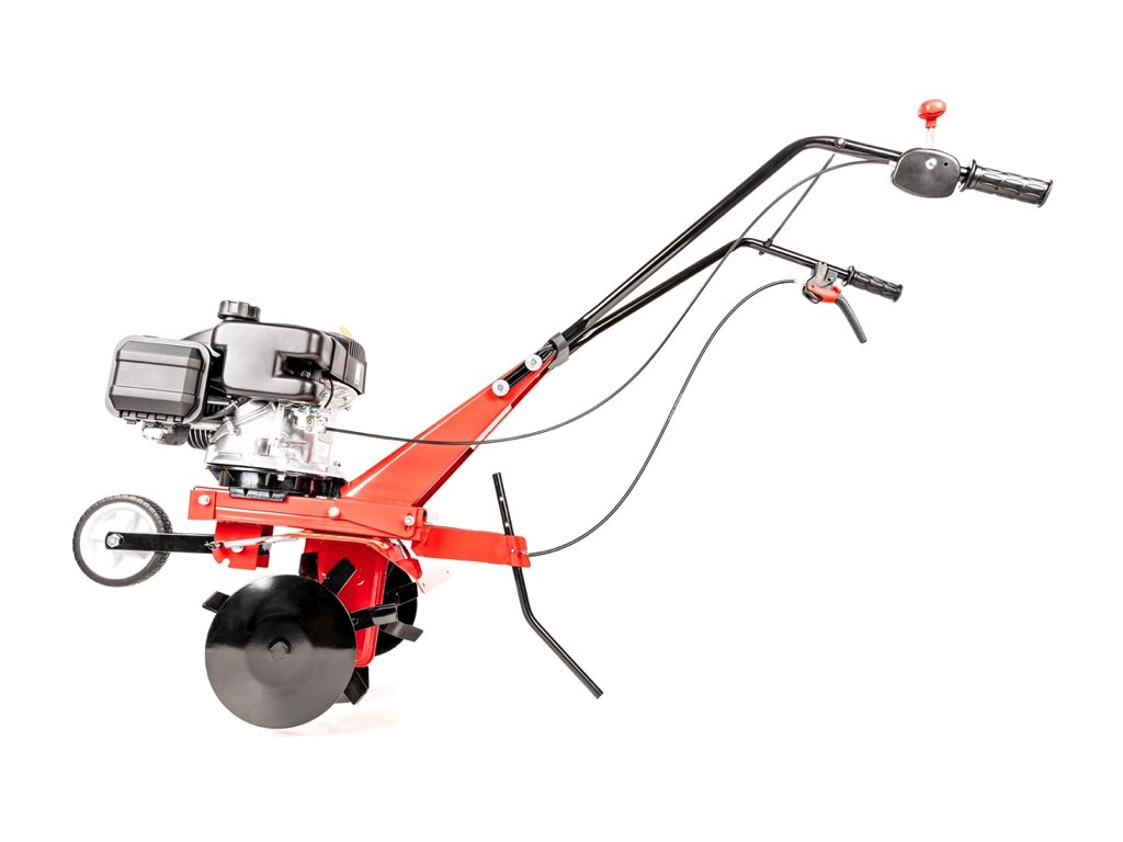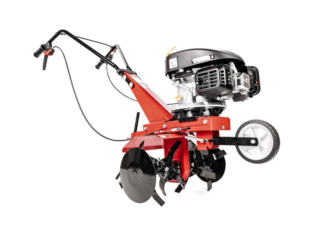 - S 2+2 noži o průměru 355 mm a obsahem motoru 139 cm3 je tento stroj schopný dosáhnout požadovaných výsledků i na tvrdší půdě. Napájení je zajištěno palivem benzínem, což zaručuje dlouhý pracovní čas bez potřeby dobíjení. Běh na jedno převodové ústrojí a průměrná rychlost otáčení ostrých nožů činí práci snadnou a efektivní.