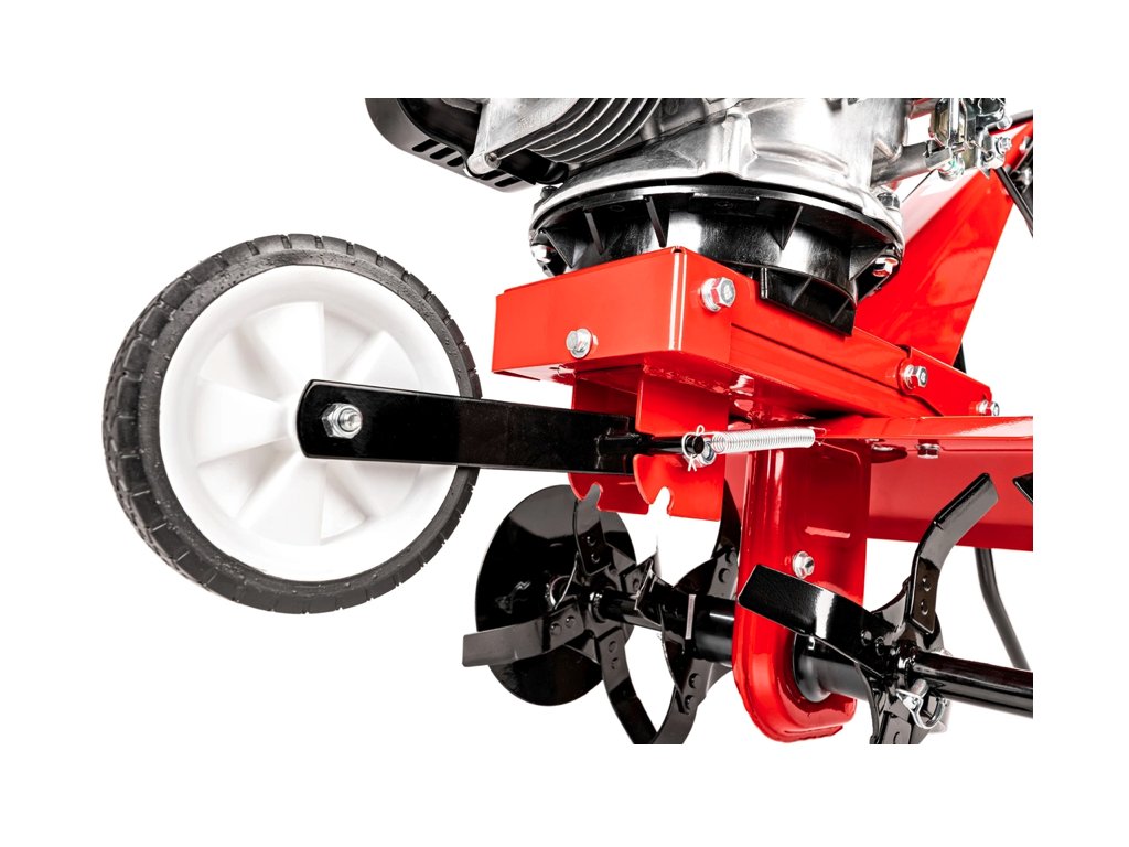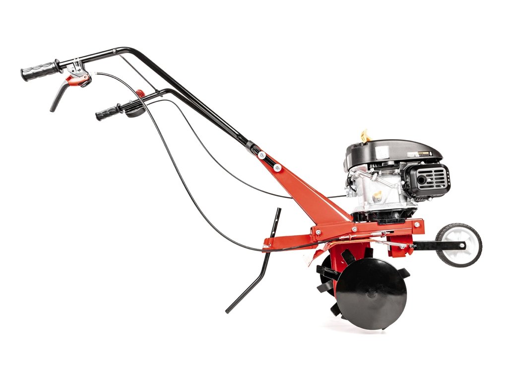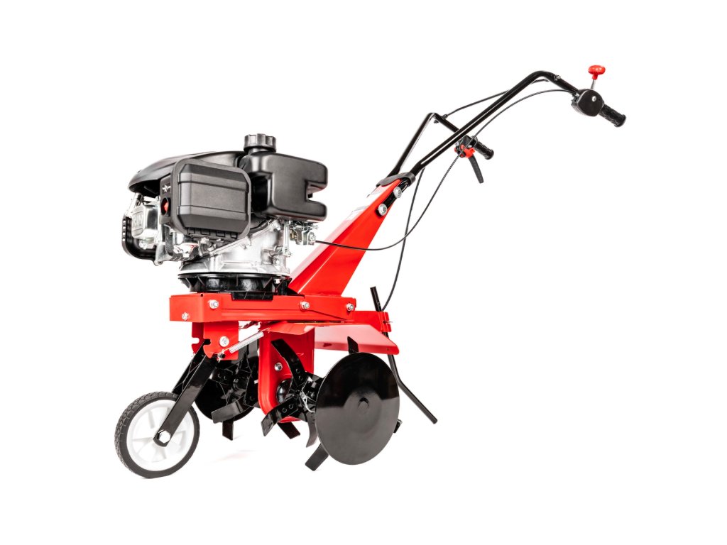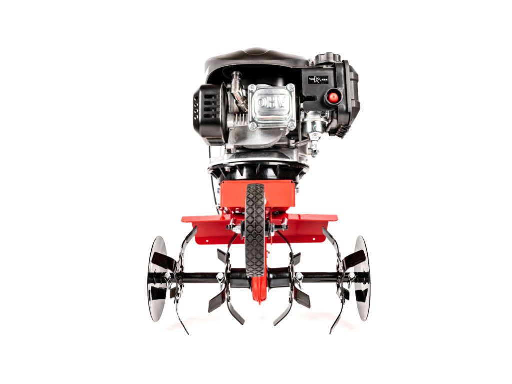 - S 2+2 noži o průměru 355 mm a obsahem motoru 139 cm3 je tento stroj schopný dosáhnout požadovaných výsledků i na tvrdší půdě. Napájení je zajištěno palivem benzínem, což zaručuje dlouhý pracovní čas bez potřeby dobíjení. Běh na jedno převodové ústrojí a průměrná rychlost otáčení ostrých nožů činí práci snadnou a efektivní.