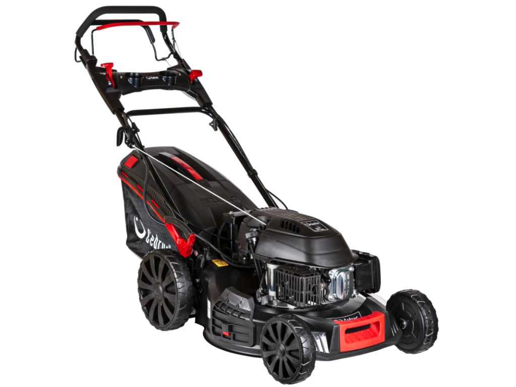 Motor Cedrus 196cm³, šířka střihu 53 cm, sběrný koš na trávu 65 l, centrální nastavení výšky, 3v1 (vyprazdňování sběrného koše, mulčování, boční vyhoz), velká zadní kola, samojízdná, elektrický startér.