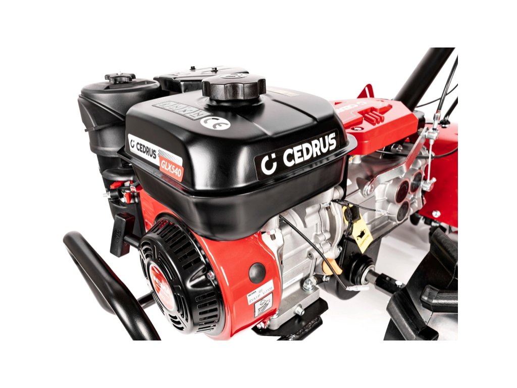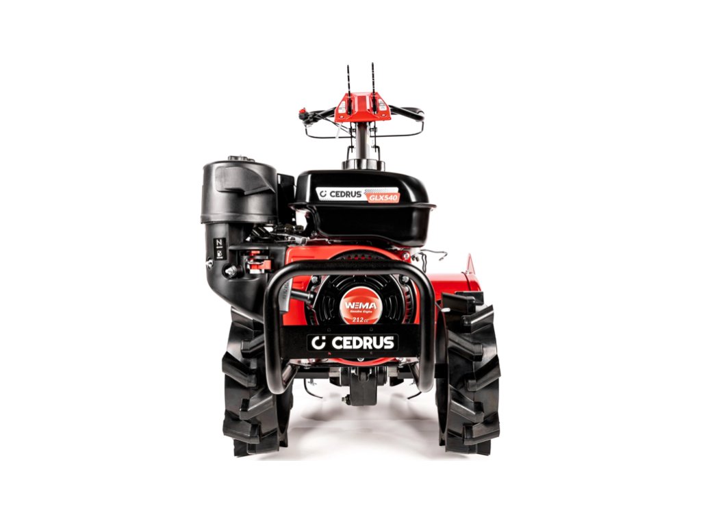 Profesionální benzínový kultivátor Cedrus GLX540 s výkonným motorem Weima a převodovkou se zpátečkou je ideálním pomocníkem pro přípravu půdy na zahradách, v sadech i na malých farmách. Pracovní šířka 54 cm, hloubka až 17 cm a tři řady nožů zaručují efektivní kultivaci i těžších půd.