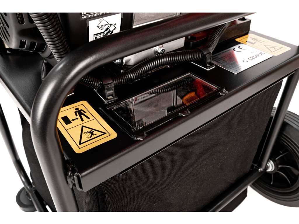 - Stroj je vybaven desetipalcovými gumovými koly, pevnou ocelovou konstrukcí, a jeho hmotnost 51 kg zajišťuje dostatečnou stabilitu při provozu. Je vhodný pro majitele zahrad, sady, chalupy i drobné profesionály.