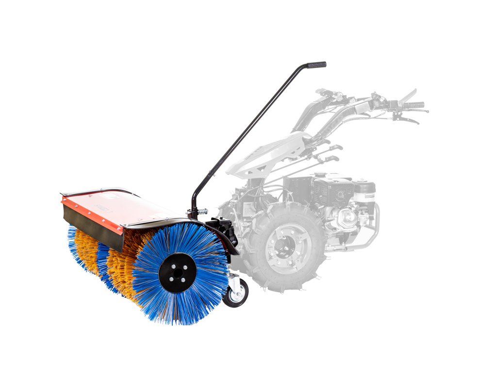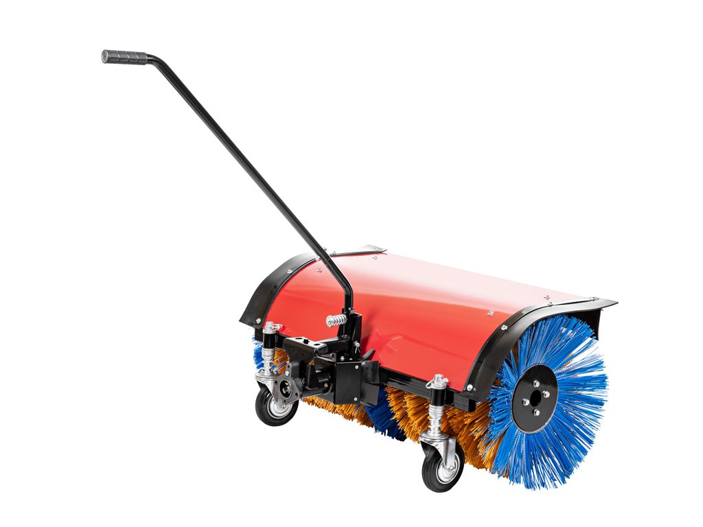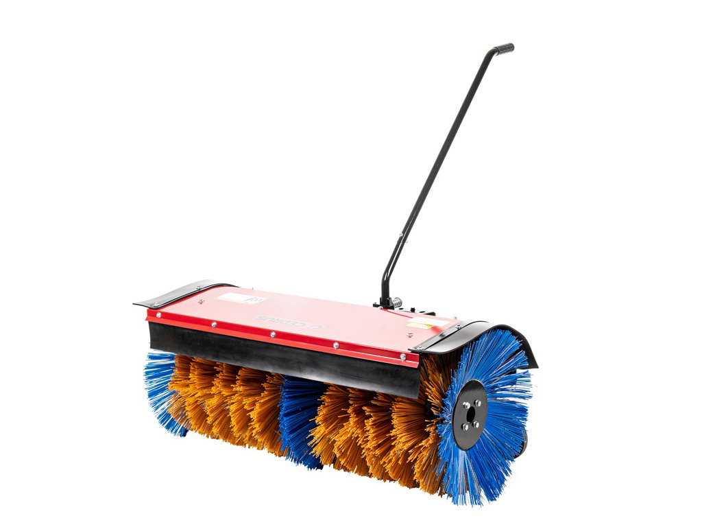 - Kartáč má ocelovou konstrukci s ochranným pláštěm a samonastavitelná kolečka pro snadnou manipulaci. Regulace výšky kartáče umožňuje přizpůsobení podle potřeb a podmínek terénu. Tento model je odolný a dlouhotrvající, ideální pro údržbu veřejných prostor nebo větších ploch.