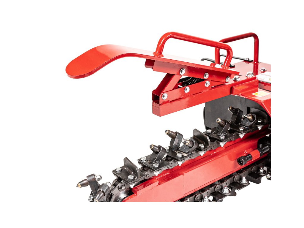 - Díky řetězu s 21 karbidovými zuby a maximální rychlosti 550 m/min rypadlo efektivně zvládne tvrdé i kamenité půdy. Speciální odkládací šnek pomáhá minimalizovat množství vyházené zeminy kolem rýhy a usnadňuje následné zasypání. Stroj je vybaven ergonomicky nastavitelnou rukojetí, která umožňuje pohodlné ovládání, a velkými koly pro snadný pohyb v terénu.