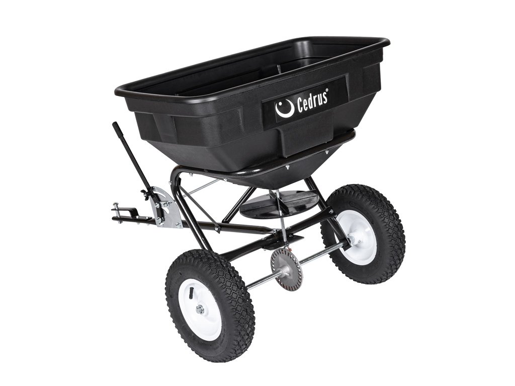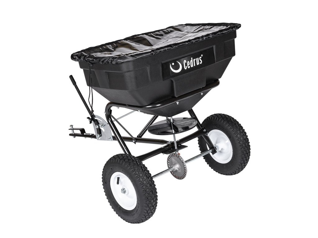 Rozmetadlo Cedrus SP31508 se zásobníkem o objemu 60 litrů je určeno k tažení za zahradní traktor. Umožňuje rovnoměrné rozmetání osiva, hnojiv nebo posypové soli na plochu až 3,5 metru. Vybaveno regulací dávky, ochranným krytem a pneumatickými koly.