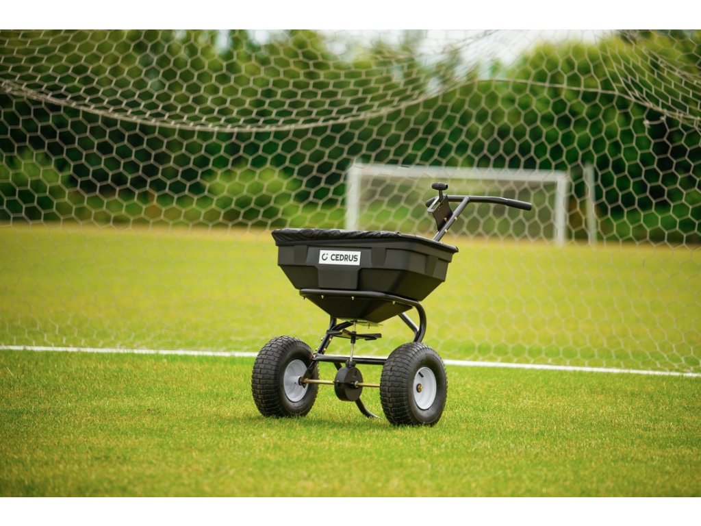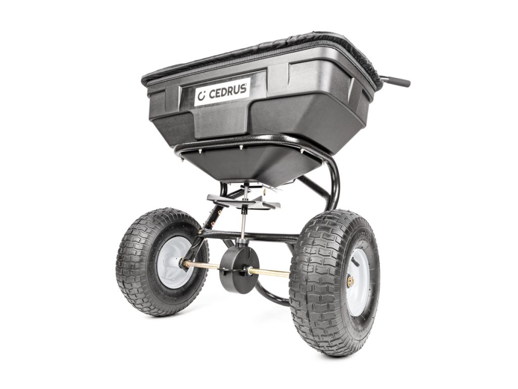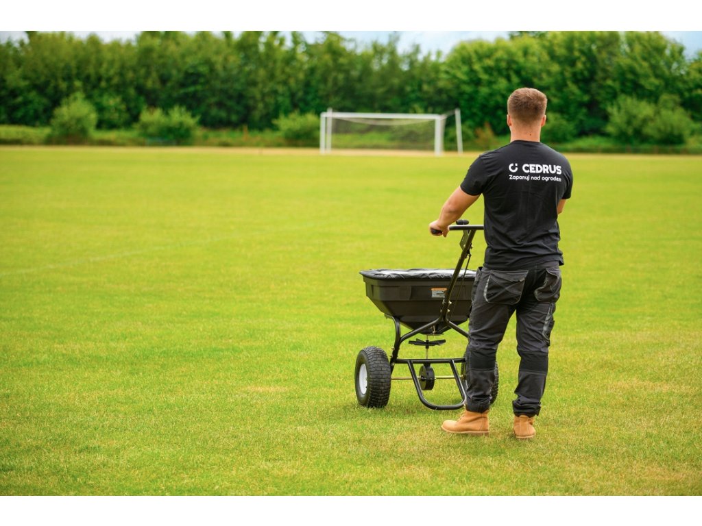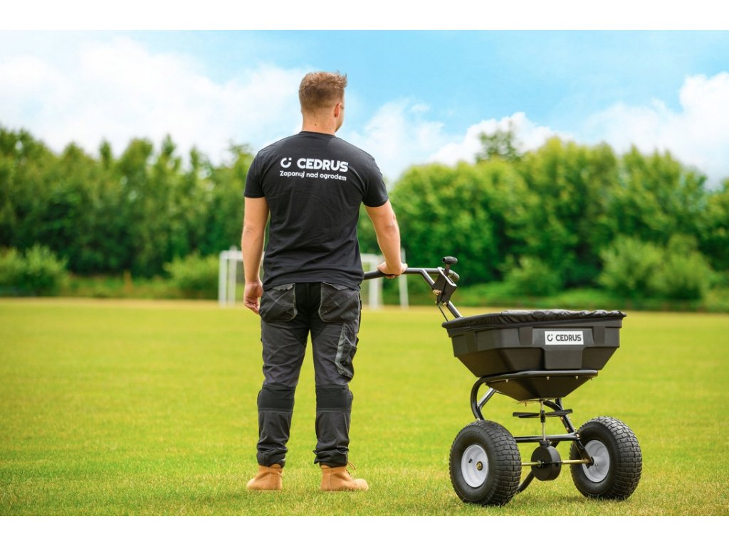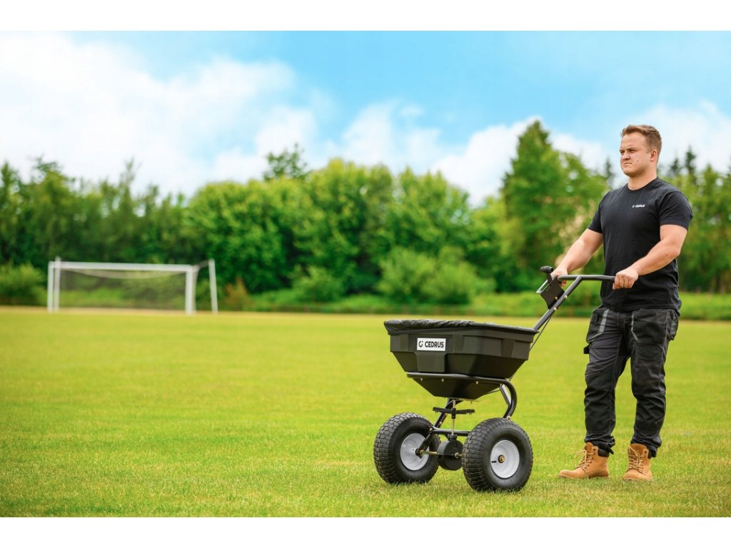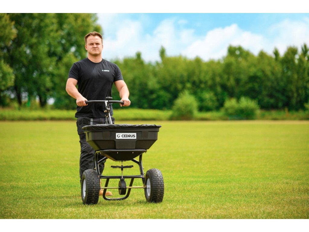 Rozmetadlo Cedrus SP31515A je ručně tlačené zařízení s plastovým zásobníkem o objemu 56 kg, ideální pro rozmetání hnojiv, travního osiva a granulátů. Vybaveno nastavitelnou dávkou, velkými koly (Ø 38 cm) a robustní konstrukcí, je vhodné pro údržbu zahrad, sadů i sportovních ploch.