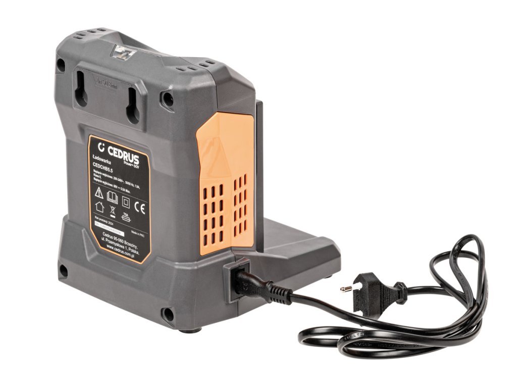 Cedrus CHB5.5 je rychlonabíječka s výstupem 5,5 A, která je určena pro nabíjení 60V Li-Ion baterií Cedrus modelů CEDB4 a CEDB8. Díky vyššímu nabíjecímu výkonu oproti standardní verzi (2,5 A) je nabíjení výrazně rychlejší – baterii 4 Ah zvládne plně dobít za pouhých 45 minut a baterii 8 Ah za 90 minut.