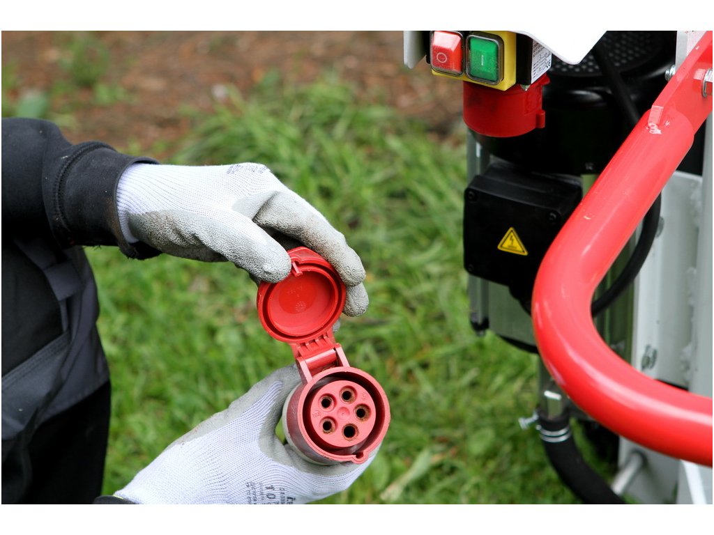 - Výkonný třífázový elektromotor: 400 V, 3300 W, poskytující dostatečný výkon pro efektivní štípání tvrdých polen.