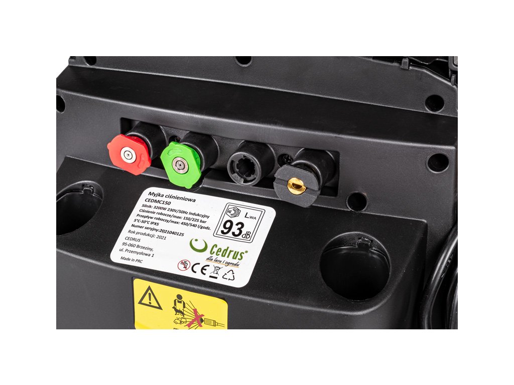 Výkonná vysokotlaká myčka Cedrus CEDMC150 s indukčním motorem o výkonu 3200 W a maximálním tlakem 225 barů. Díky mosaznému čerpadlu a 10m vyztužené hadici poskytuje spolehlivý výkon pro čištění automobilů, fasád, teras či průmyslových ploch.