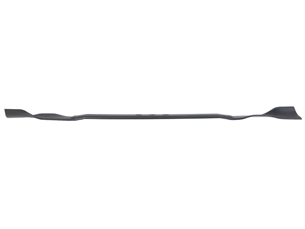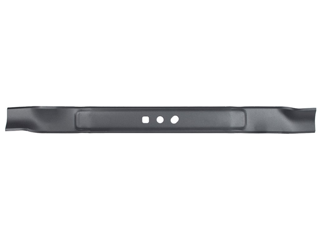 - Vyroben z kalené oceli, nůž vykazuje vysokou odolnost proti deformaci, nárazům a opotřebení. Tvar lopatek přispívá k účinnému proudění vzduchu a sběru posekané trávy.