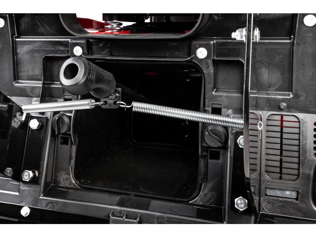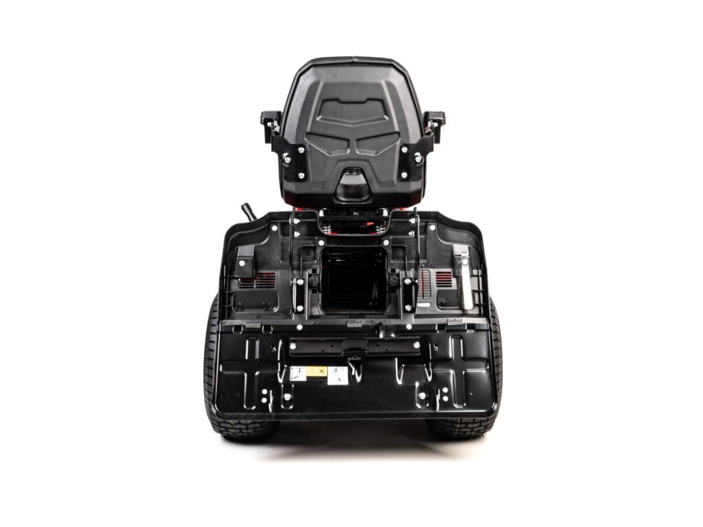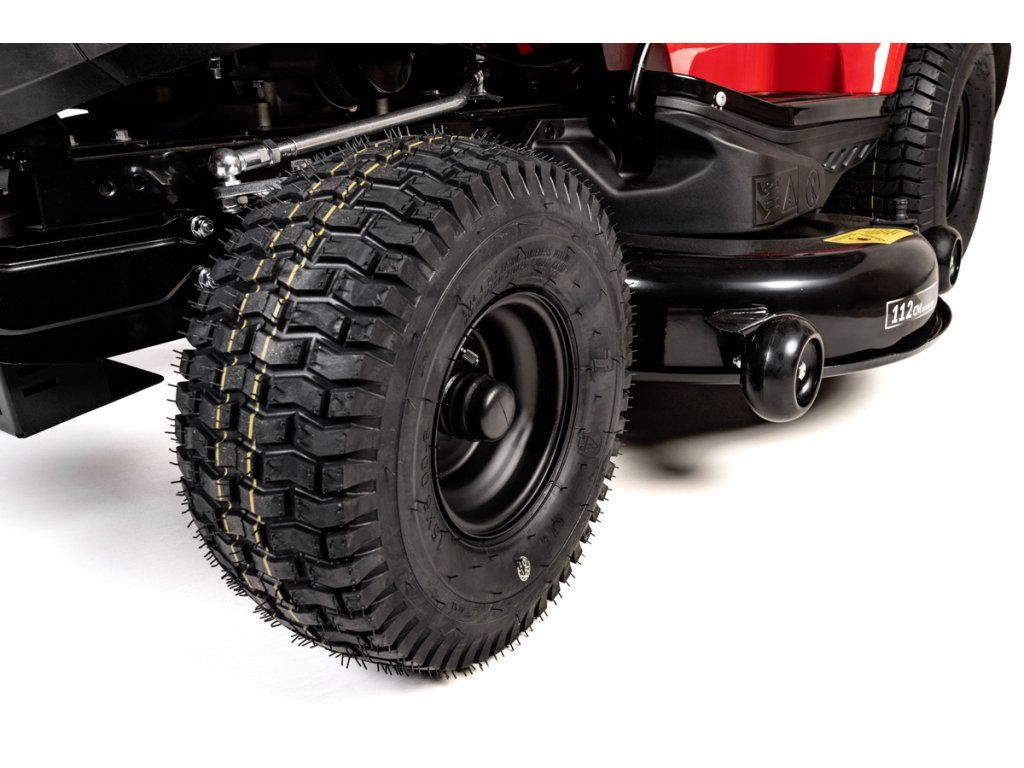 - Velkou výhodou je hydrostatická převodovka Tuff Torq, která umožňuje intuitivní ovládání pomocí pedálů – bez řazení, bez zdržování. To výrazně zjednodušuje práci zejména při manévrování kolem stromů, záhonů nebo překážek.