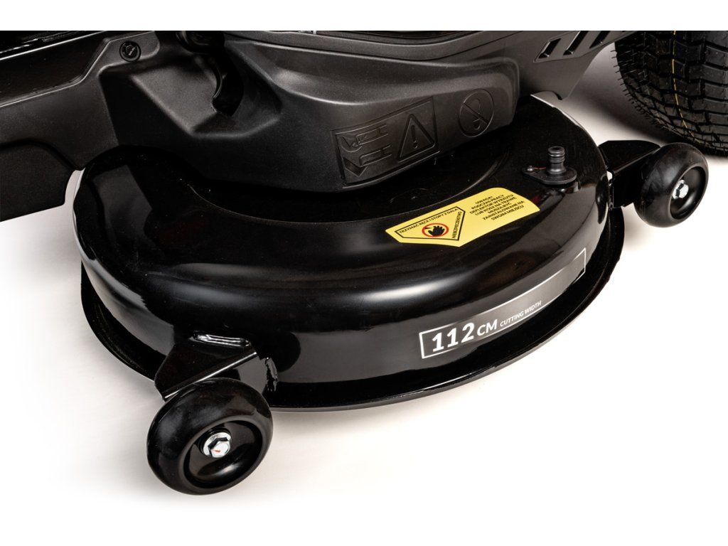 - Sečení je efektivní díky záběru 112 cm a dvěma nožům, které zajišťují rovnoměrný výsledek. Posečenou trávu můžete sbírat do prostorného 300l koše s akustickým indikátorem naplnění, nebo využít mulčovací záslepku, která je součástí balení.