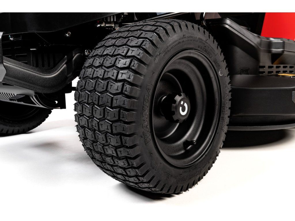 - Plynulý pojezd zajišťuje hydrostatická převodovka Tuff Torq, ovládaná pedálem vpřed a vzad, což výrazně zjednodušuje práci i méně zkušeným uživatelům.
