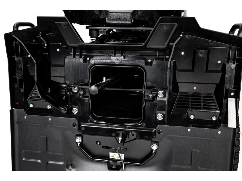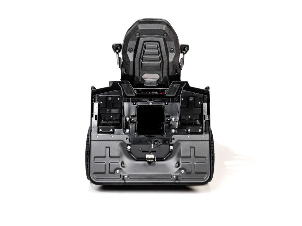 - Žací ústrojí se záběrem 102 cm a dvěma noži umožňuje rychlé a efektivní sečení. Posekaná tráva je sbírána do prostorného koše o objemu 280 litrů, který je vybaven akustickým indikátorem naplnění. Standardní výbavou je také mulčovací sada, která pomáhá udržet trávník zdravý a hustý.