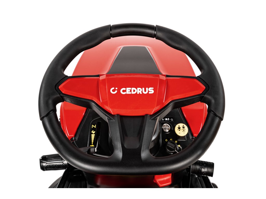 CEDRUS C-TRAC-98HS je spolehlivý zahradní traktor, který umožňuje efektivní sečení velkých travnatých ploch s bočním výhozem. Široký pracovní záběr 98 cm a elektromagnetické zapínání nožů zajišťují efektivní výkon a komfortní práci.